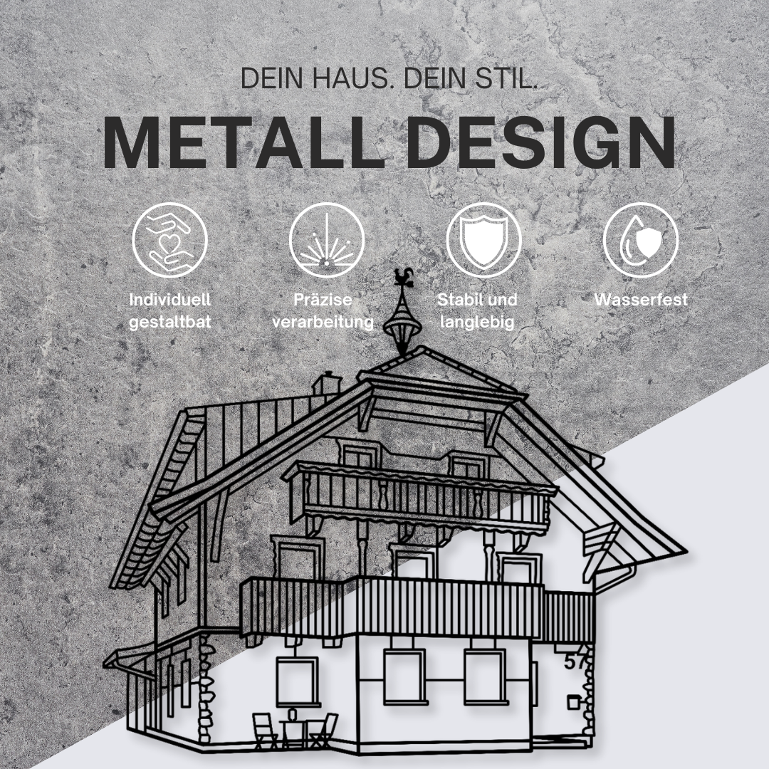 Ob charmantes Bauernhaus, moderne Stadtvilla, historischer Gutshof oder deine geliebte Hofstelle – wir verwandeln dein Zuhause in ein kunstvolles Metall-Wandbild, das Eindruck hinterlässt. Lade einfach ein Foto hoch, und wir erstellen einen Entwurf ganz nach deinen Vorstellungen. Nach deiner Freigabe starten wir mit der Produktion deines maßgeschneiderten Kunstwerks.
