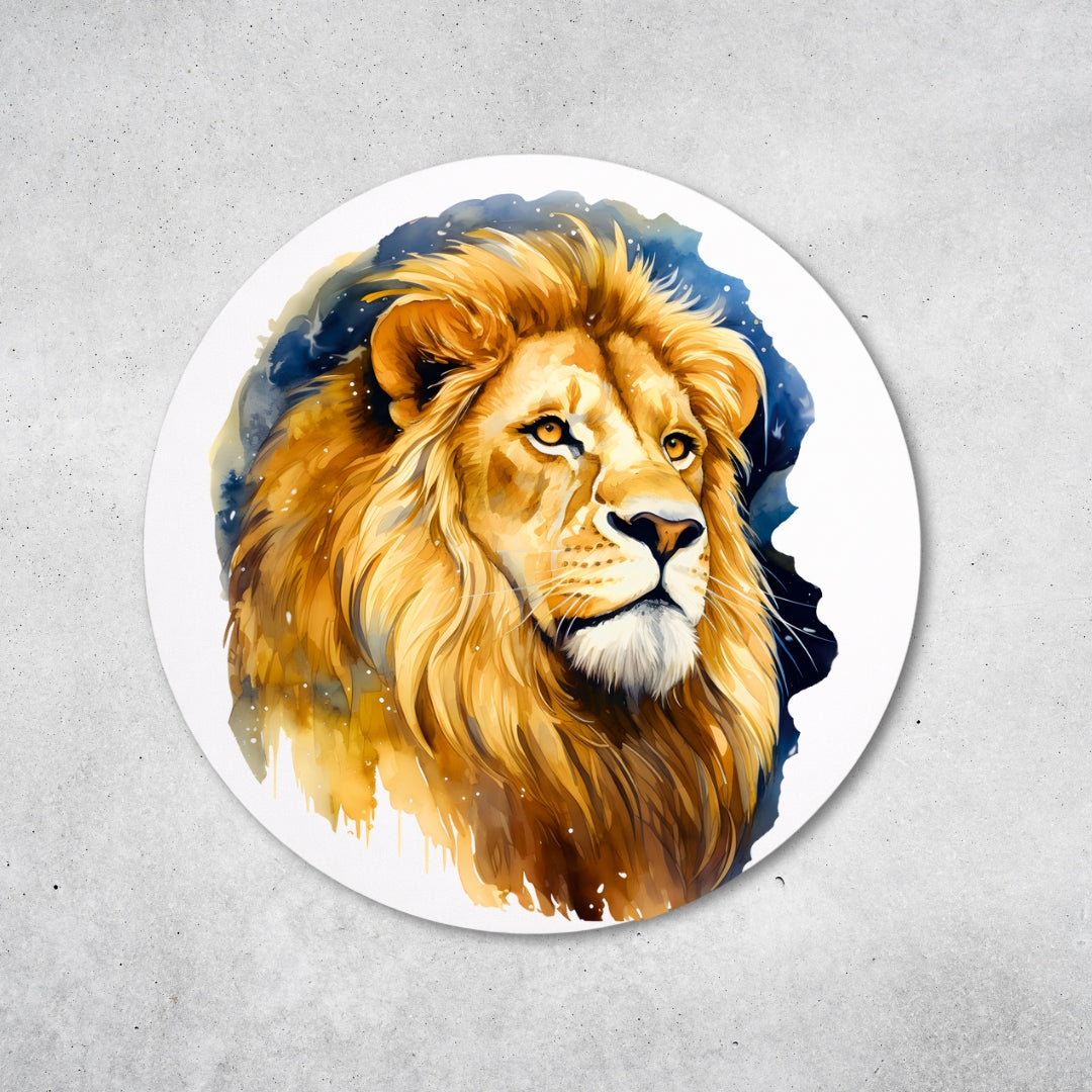 Dieses runde Metalldesign zeigt einen kraftvollen Löwen in einem modernen, kunstvollen Stil. Gefertigt aus 1 mm starkem Metall, überzeugt es durch Stabilität, langlebige Qualität und eine intensive Farbwirkung.